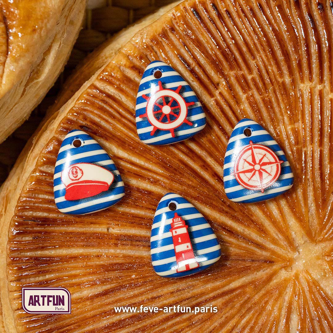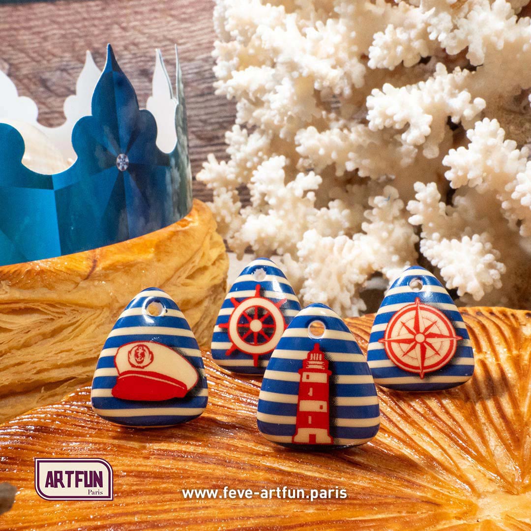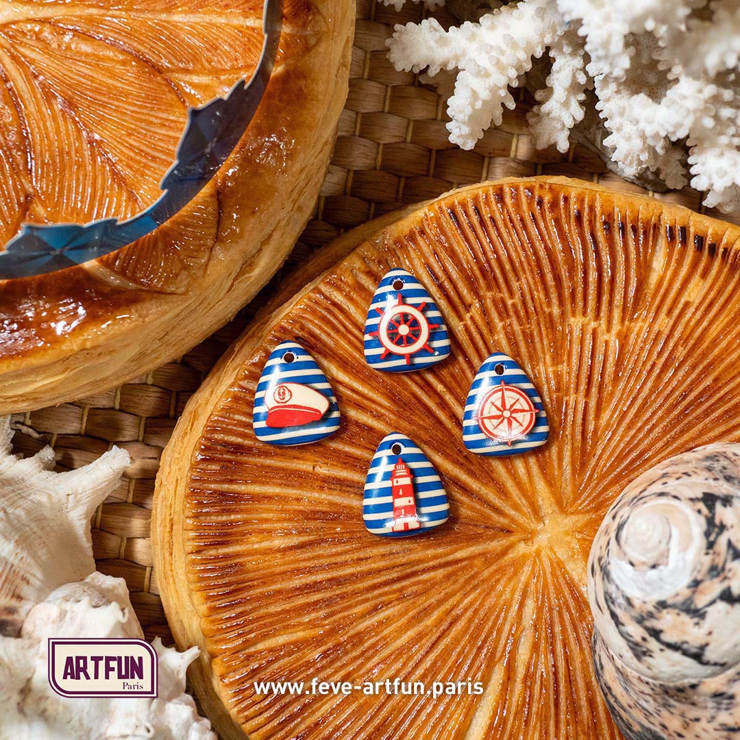 À vous, les maitres en art pâtissier, passionnés, amateurs ou aguerris, qui menez la barque en cuisine, vers un souffle nouveau de recettes dans le vent, pour l'Épiphanie. Seul maître à bord, vous concoctez des galettes des rois aux parfums uniques et dépaysants, comme du sésame noir, du sirop d'érable, des pommes au café ou encore miel et pistaches, ArtFun vous souhaite de voguer librement sur vos inspirations culinaires, et de profiter l'esprit libre du choix de la gamme de fèves-bijoux en conditionnement Mini-Lot. Votre imaginaire prend vie dans vos gâteaux et brioches des rois, choisissez vos Fèves ArtFun comme il vous plait. En lot de 40 fèves rapidement livrées chez vous, leur protection est assurée pendant le transport, grâce à leur emballage sous-vide en safe-pack.