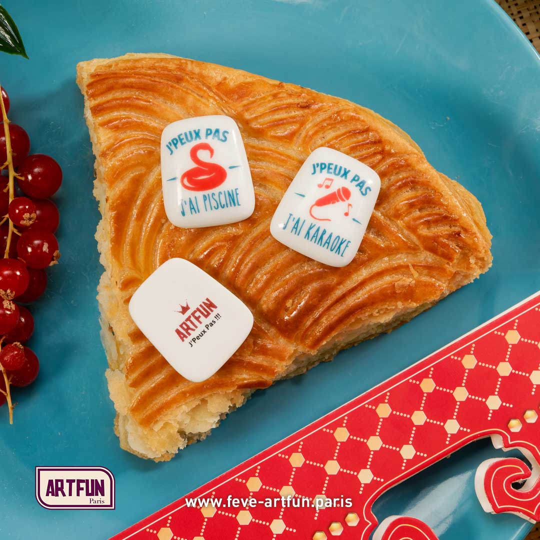 • Particularités : Une Épiphanie qui déchire avec les fameuses Fèves J'Peux Pas. Une note d'humour pour cette collection de fèves qui ne passera pas inaperçue par tous ceux qui ont la réf : pâtisserie, piscine, tricot, apéro, disco, karaoké, licorne, galette et pétanque !
