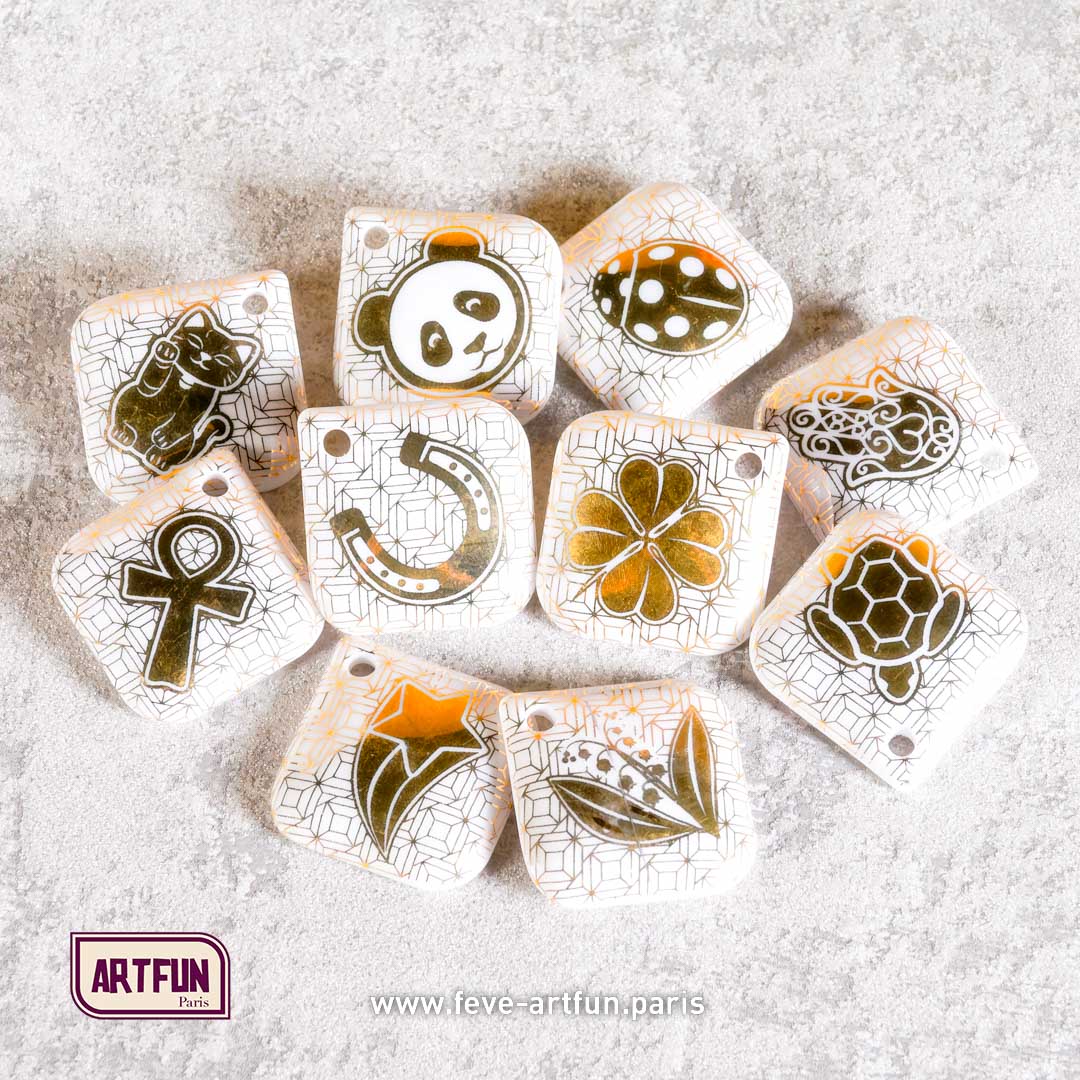 Caractéristiques de vos luxueuses Fèves-Bijoux ArtFun PORTE-BONHEUR :