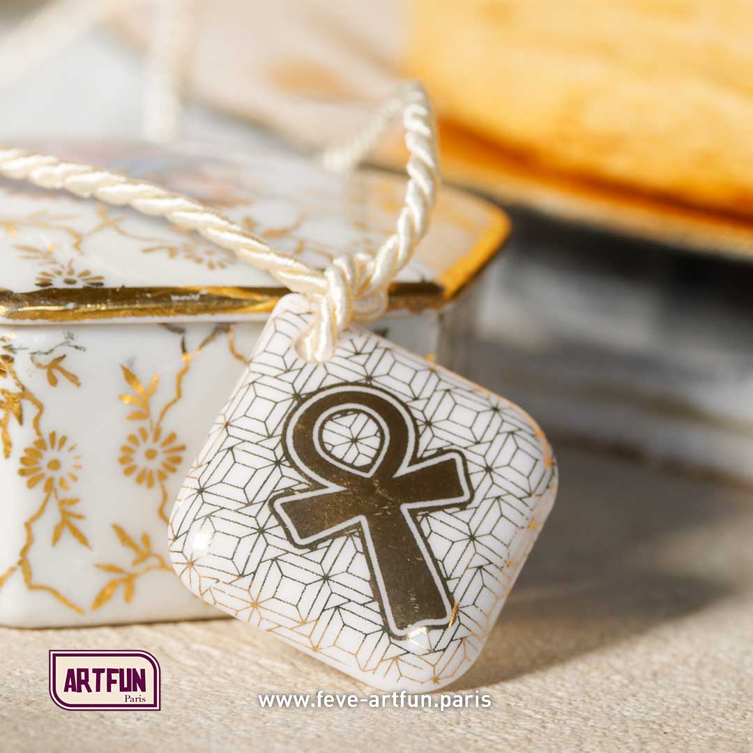 La chance vous sourit lorsque vous recevez la part de galette contenant la fève ! Surtout si c’est un Bijou qui vous accompagne toute l’année, un pendentif ou un porte-clé, une fève bijou en belle porcelaine avec fine dorure.