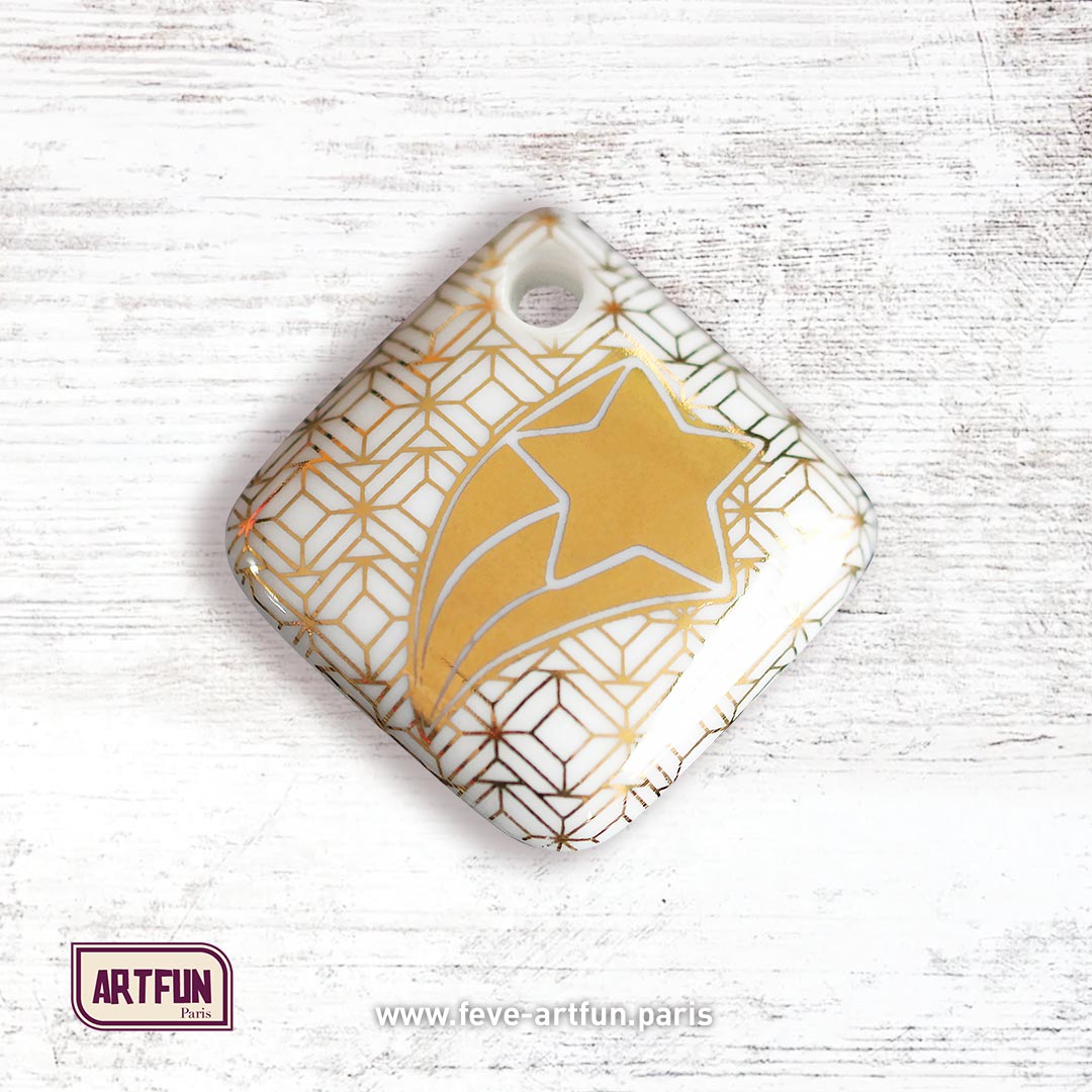 Fève percée en pendentif - Décor posé à la main.